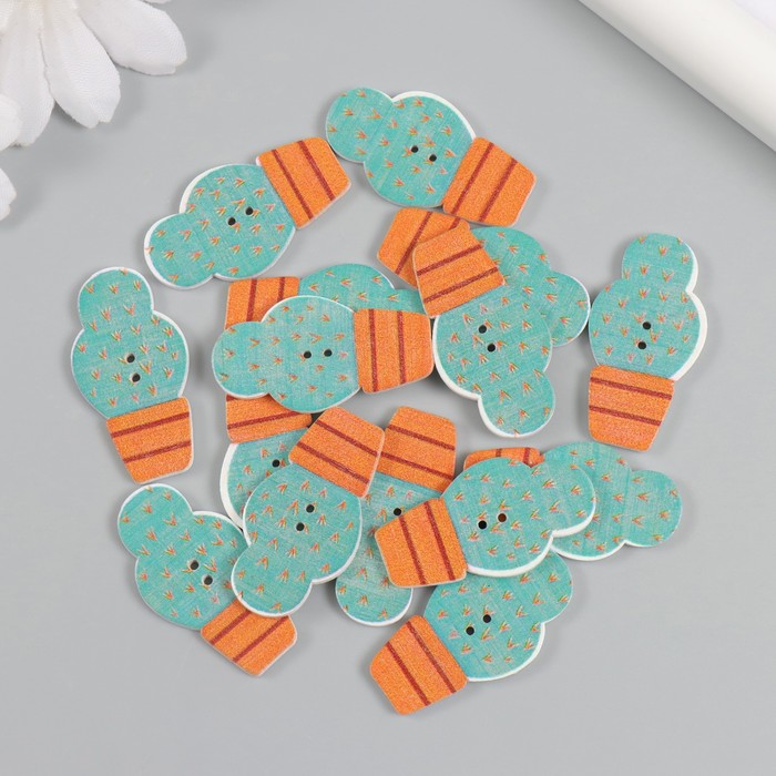 Пуговицы дерево для творчества 2 прокола «Кактус в горшке», набор 15 шт., 1.9×3.3 см