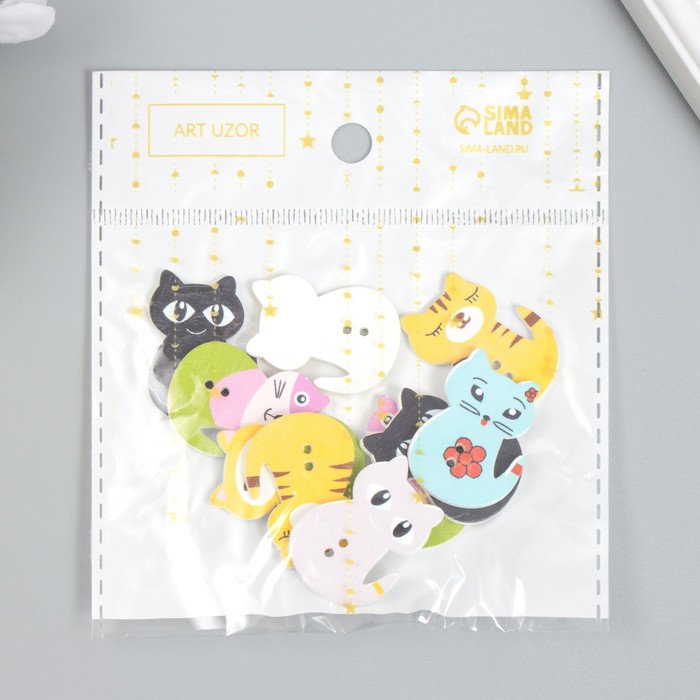Пуговицы дерево для творчества 2 прокола «Котята», набор 10 шт., 3×2.1×0.2 см — Характеристики