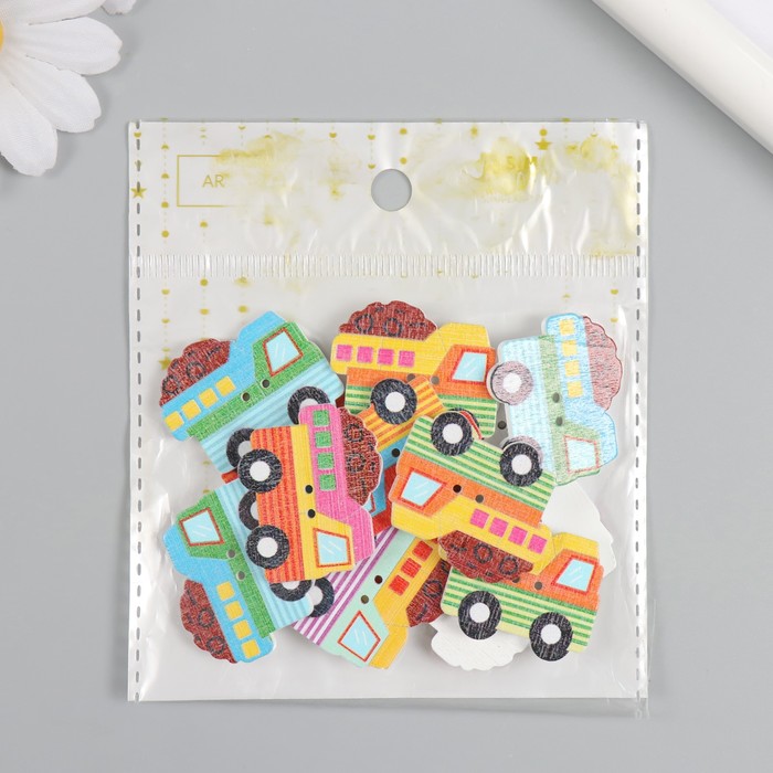 Пуговицы дерево для творчества 2 прокола «Самосвал», набор 15 шт., 3.2×2.7 см