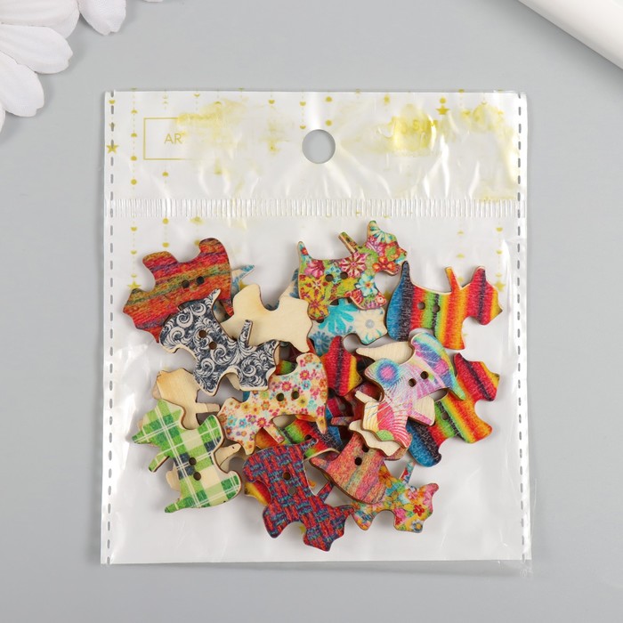 Пуговицы дерево для творчества 2 прокола «Терьер», набор 20 шт., 2.8×2 см