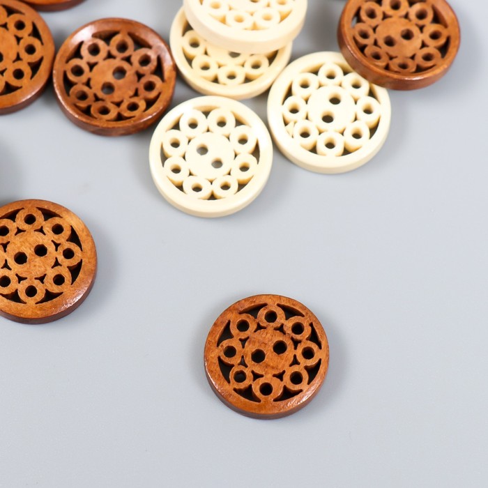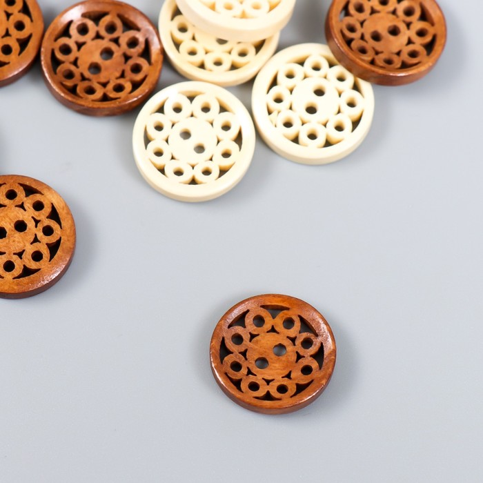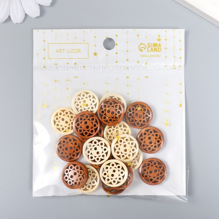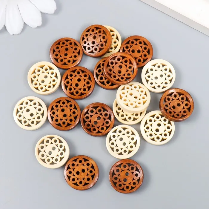 Пуговицы дерево для творчества 2 прокола «Цветок из пузырей», набор 20 шт., 1.8×1.8×0.3 см, МИКС — Характеристики