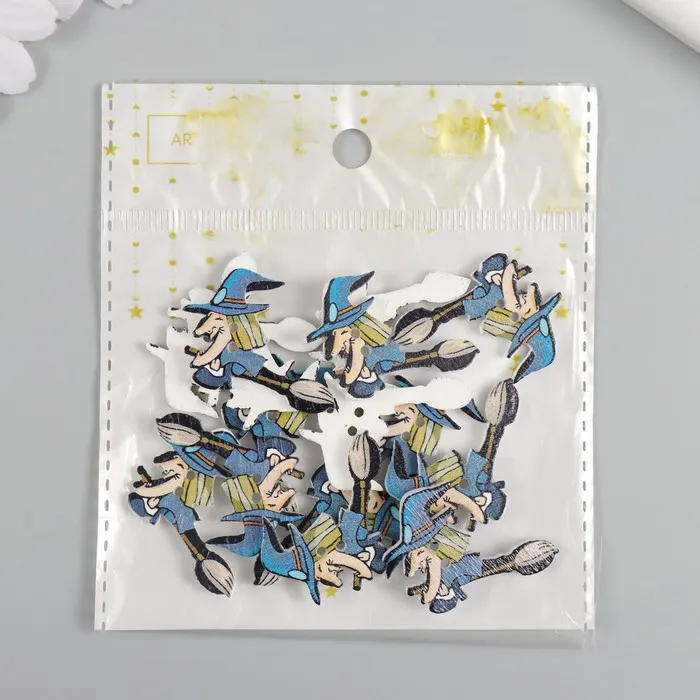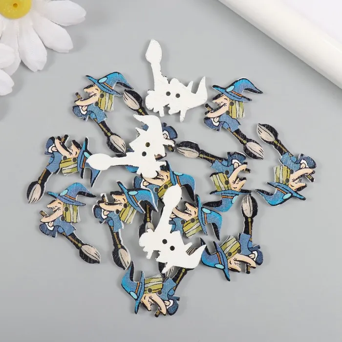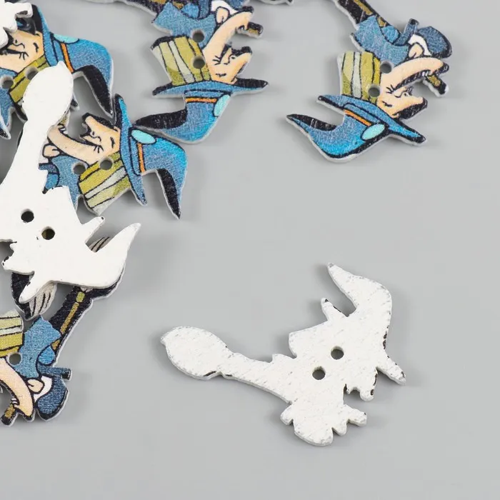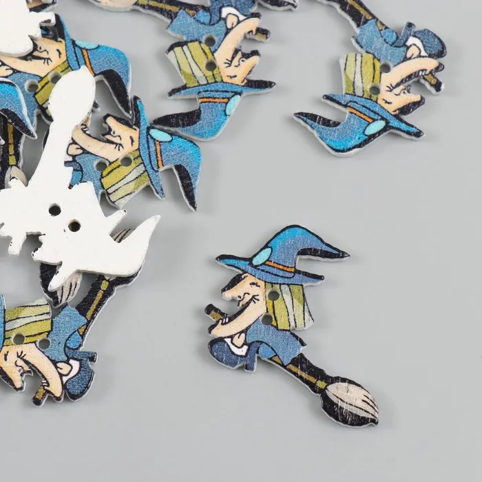 Пуговицы дерево для творчества 2 прокола "Ведьма на метле" набор 15 шт 3,5х2,5 см