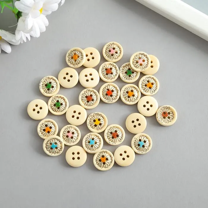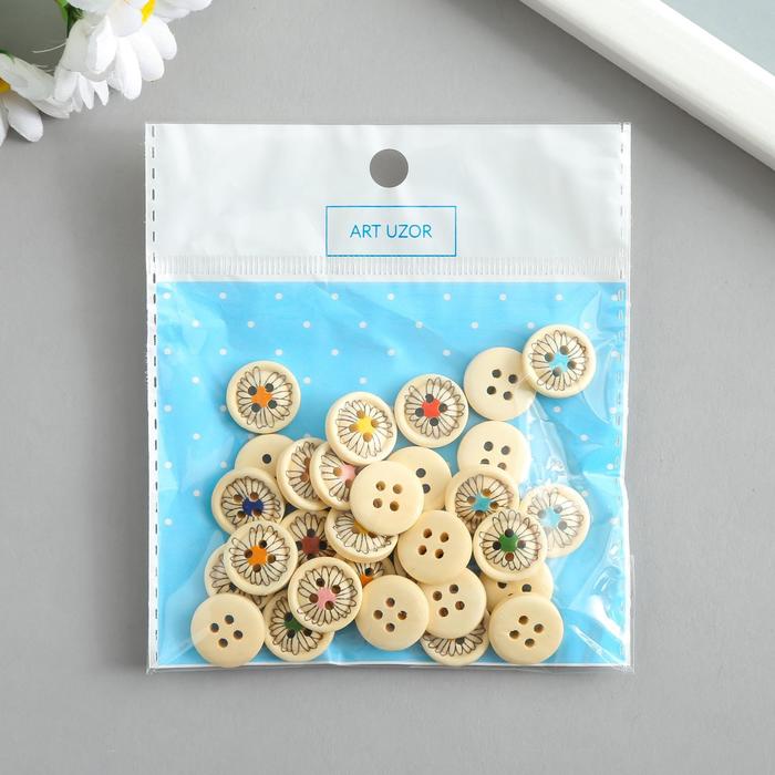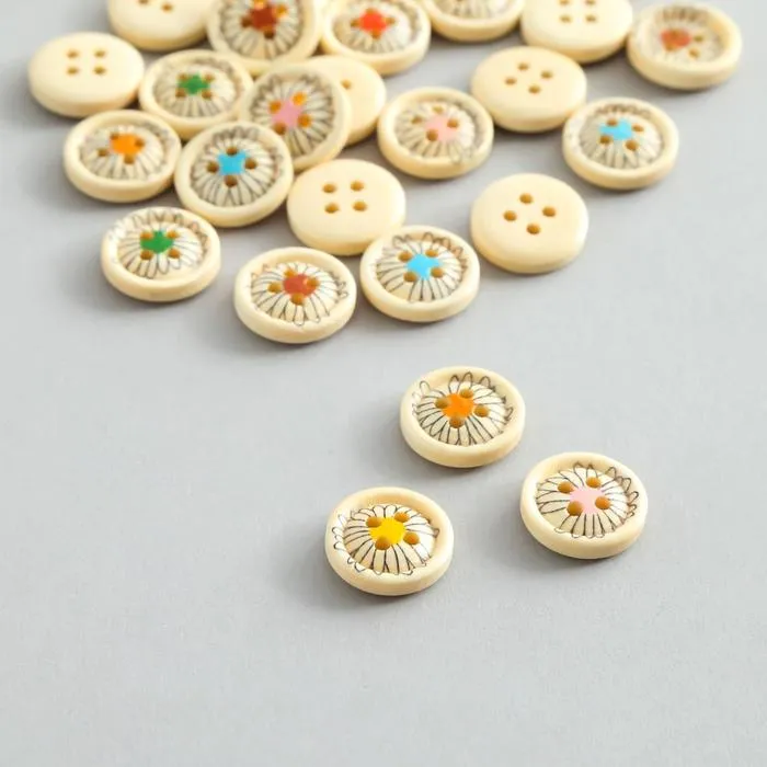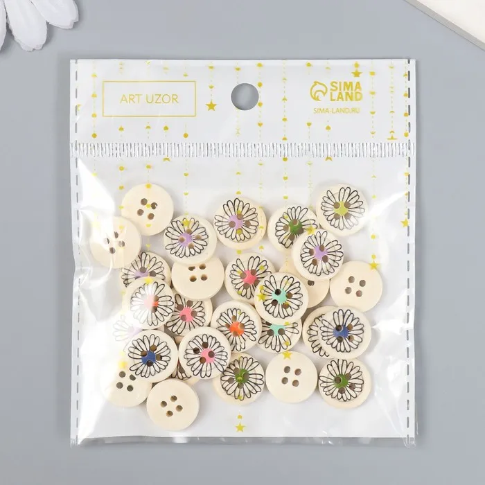 Пуговицы дерево для творчества 4 прокола «Ромашка с яркой серединой», набор 30 шт., 1.5×1.5×0.3 см — Характеристики