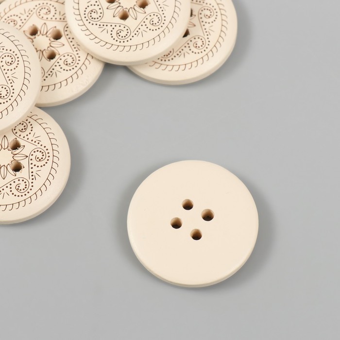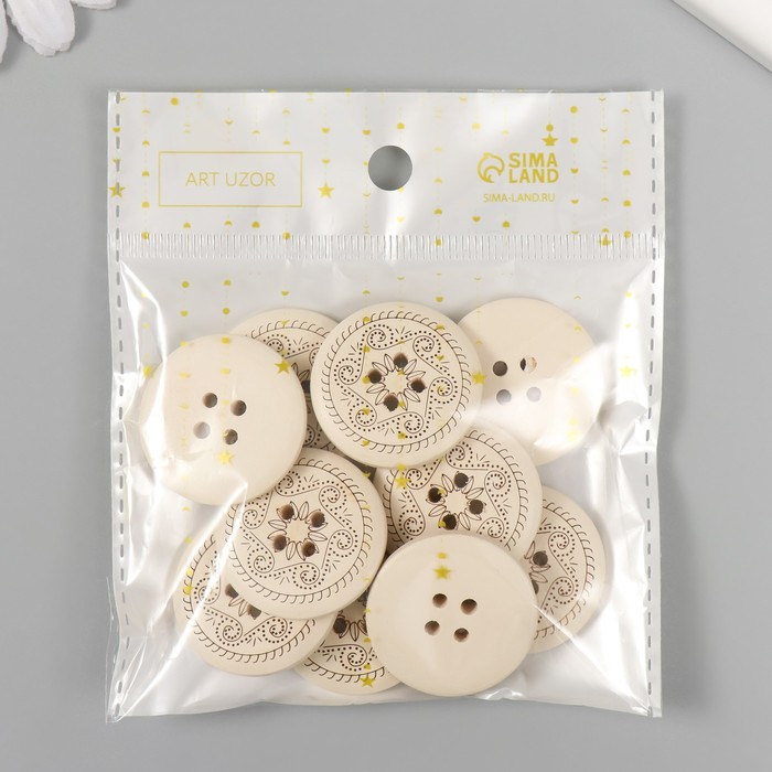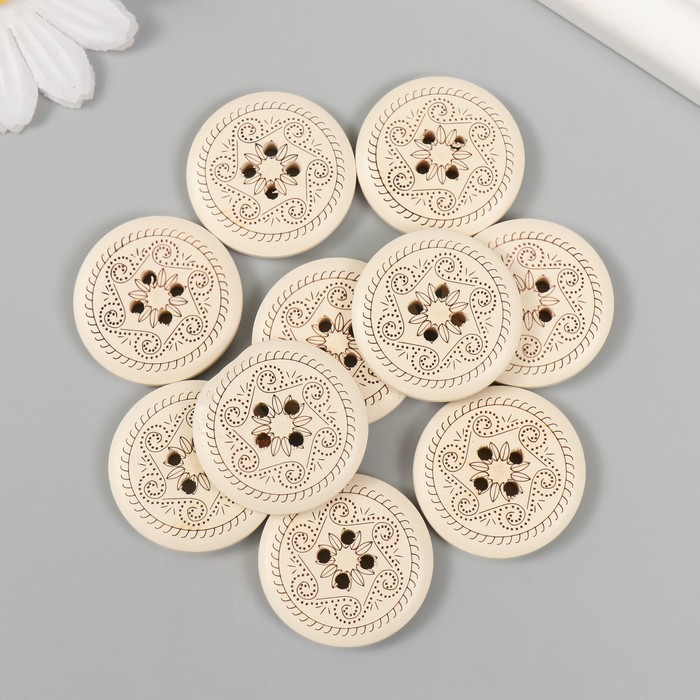 Пуговицы дерево для творчества 4 прокола «Узоры», белая, набор 10 шт., 3×3 см
