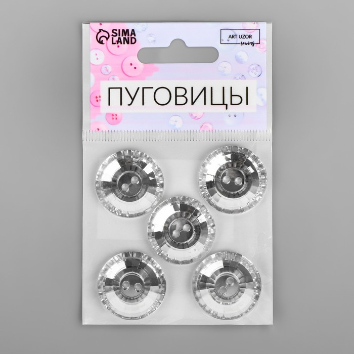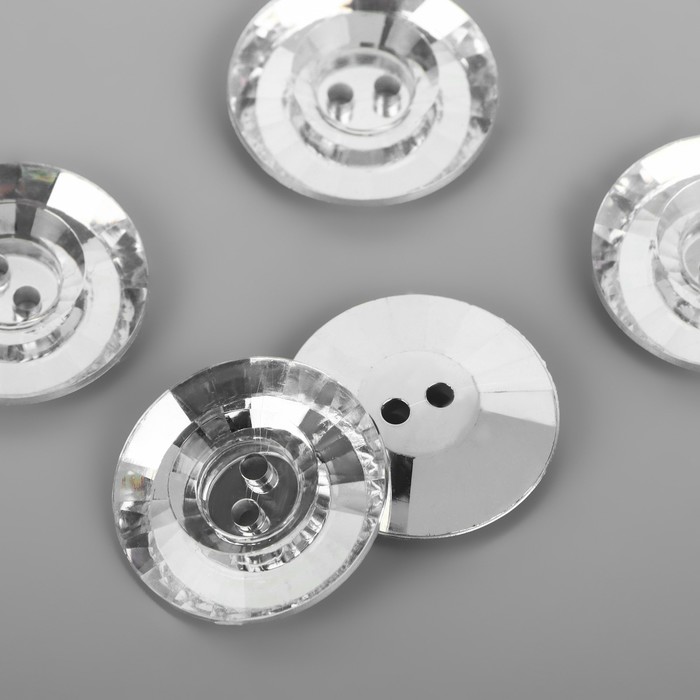 Пуговицы «Хрусталь», 2 прокола, d=25 мм, набор 5 шт., цвет серебряный — Характеристики