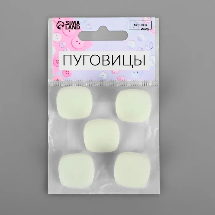 Пуговицы на ножке «Квадрат», 22×22 мм, набор 5 шт., матовые, белые — Характеристики