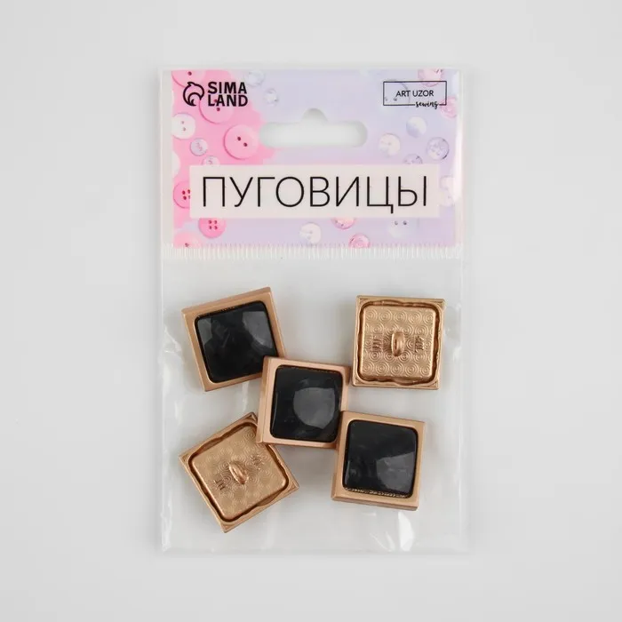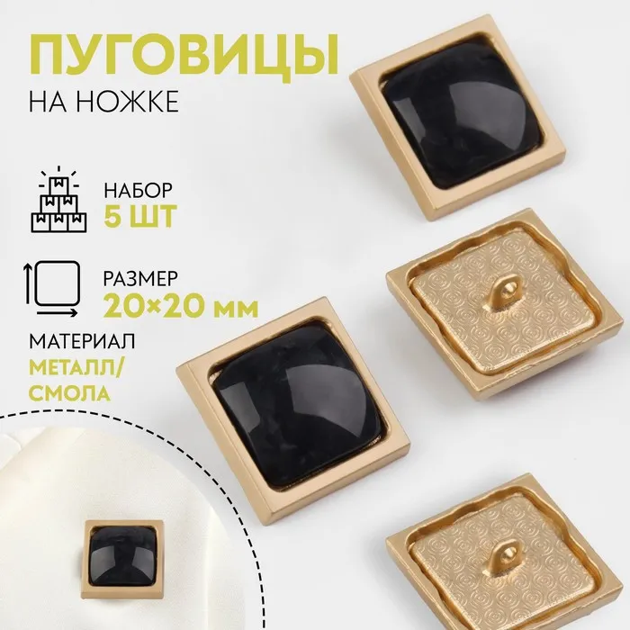 Пуговицы на ножке, металлические, 20×20 мм, набор 5 шт., чёрные — Характеристики
