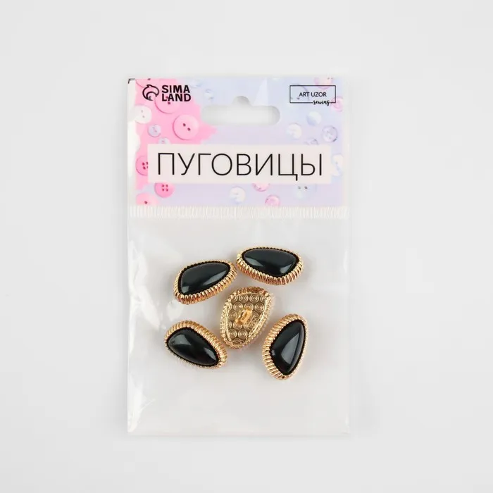 Пуговицы на ножке, металлические, 21.5 мм, набор 5 шт., цвет тёмно-зелёный, золотой — Характеристики