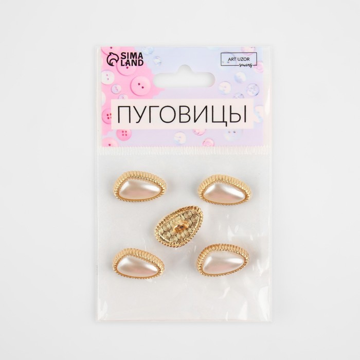 Пуговицы на ножке, металлические, 21.5 мм, набор 5 шт., цвет жемчужный, золотой — Характеристики