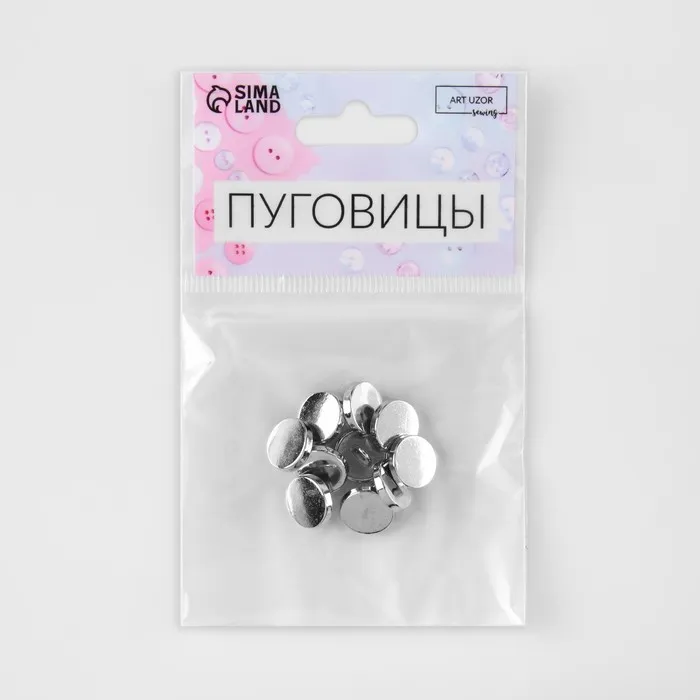 Пуговицы на ножке, металлические, d=11 мм, набор 10 шт., глянцевые, цвет серебряный — Характеристики