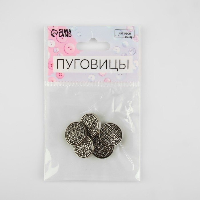 Пуговицы на ножке, металлические, d=18 мм, набор 5 шт., цвет чёрно-серебряный — Характеристики