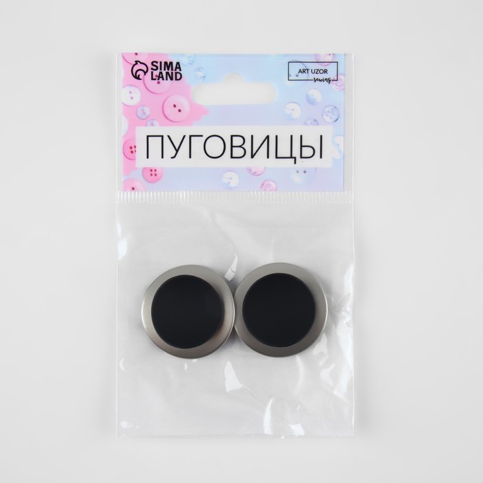 Пуговицы на ножке, металлические, d=27 мм, набор 2 шт., цвет серебряный, чёрный — Характеристики