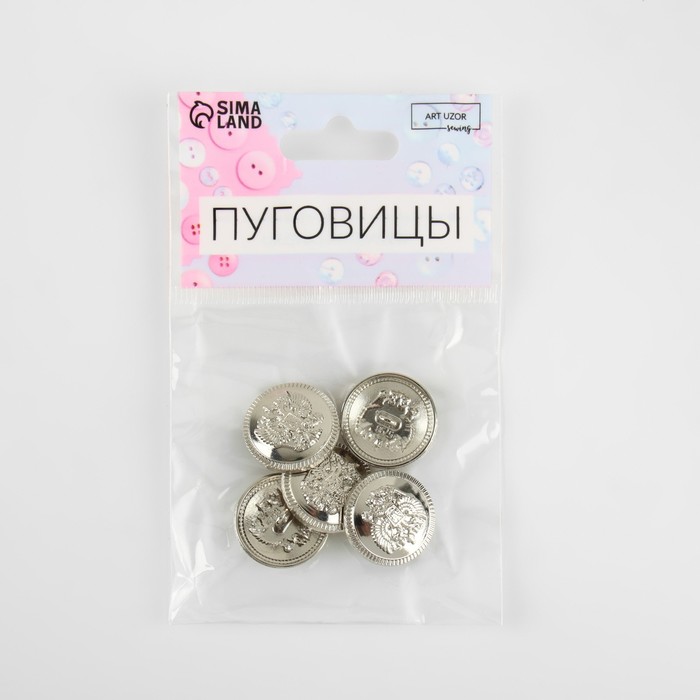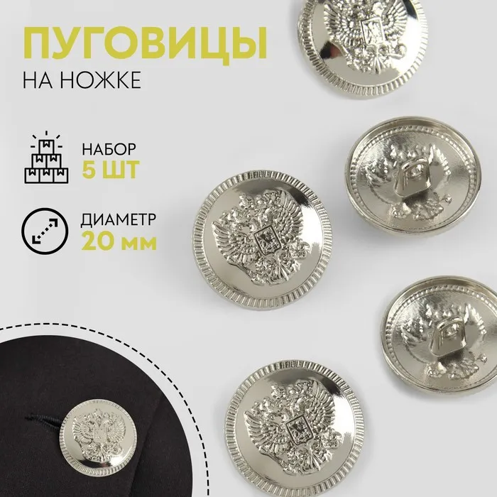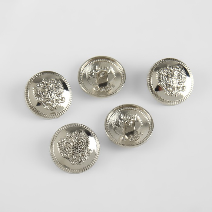 Пуговицы на ножке, металлические, «Герб России», d=20 мм, набор 5 шт., цвет серебряный — Характеристики