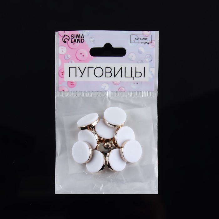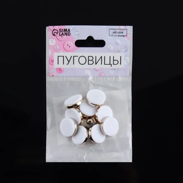 Пуговицы на ножке, пластиковые, d=15 мм, набор 10 шт., матовые, цвет белый, золотой — Характеристики