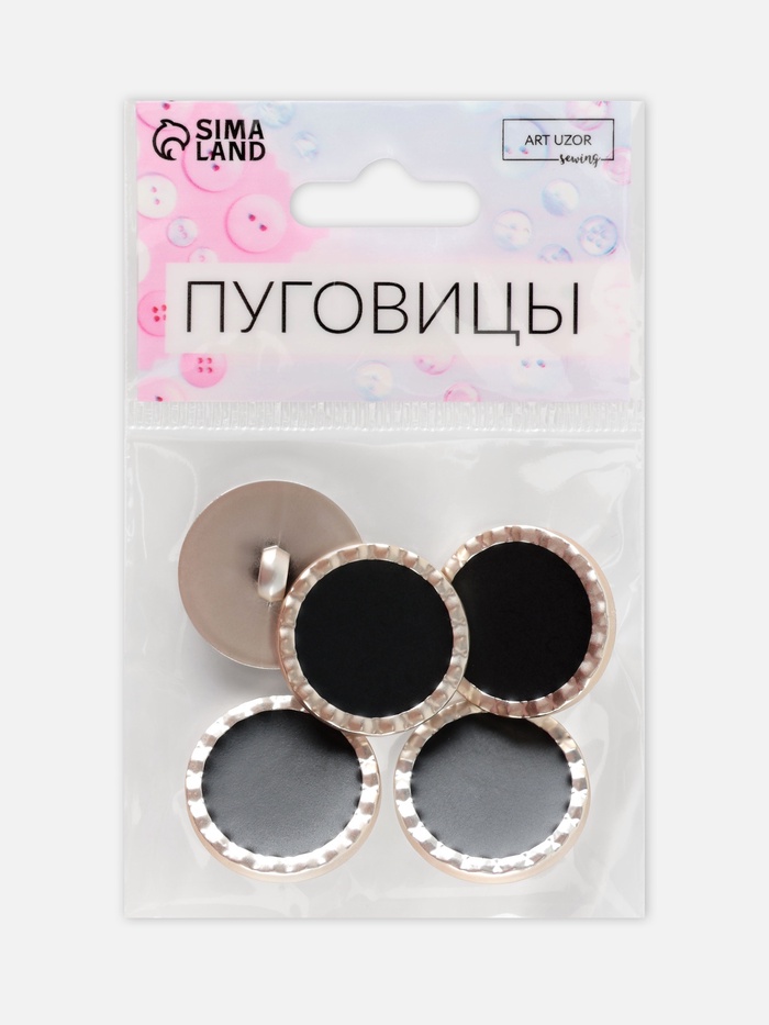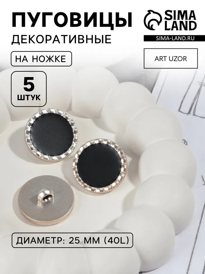 Пуговицы на ножке, пластиковые, d=25 мм, набор 5 шт., чёрные — Характеристики