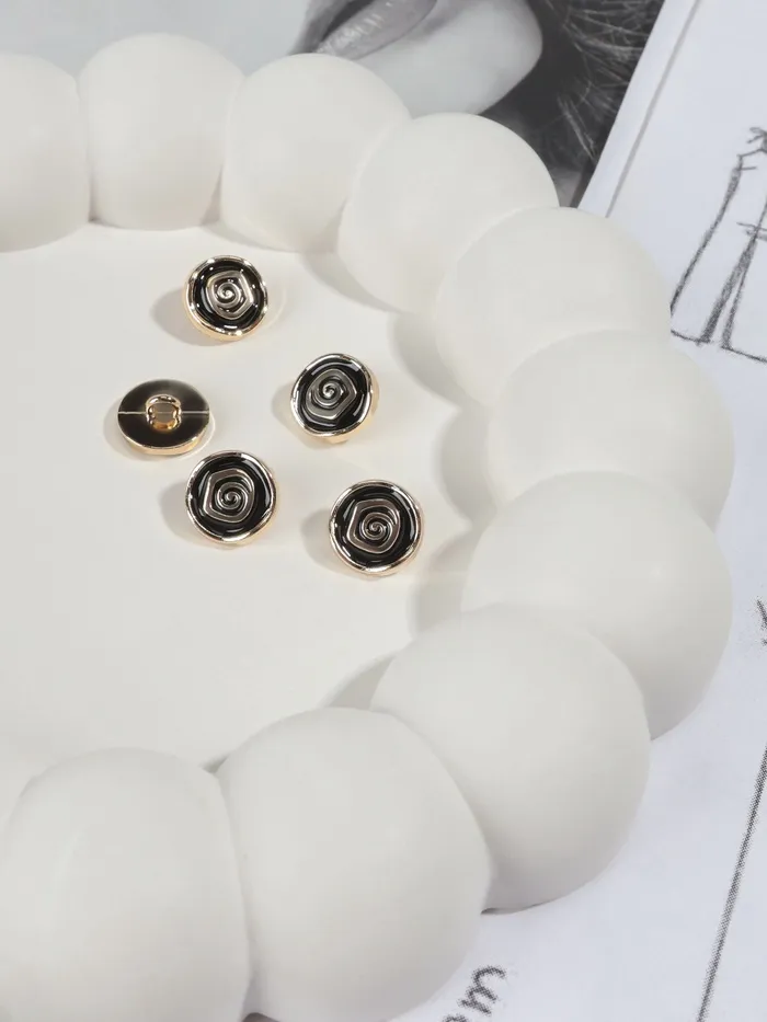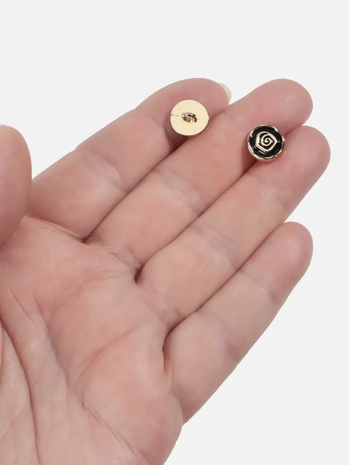 Пуговицы на ножке «Роза», d=10 мм, набор 5 шт., цвет чёрный, золотой