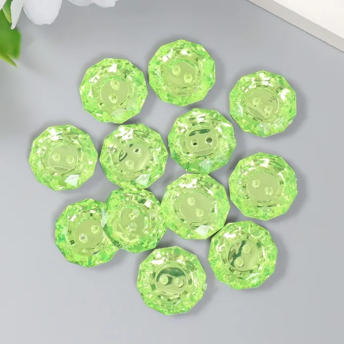 Пуговицы пластик для творчества 2 прокола «Кант страз», набор 12 шт., зелёный, d=1.7 см