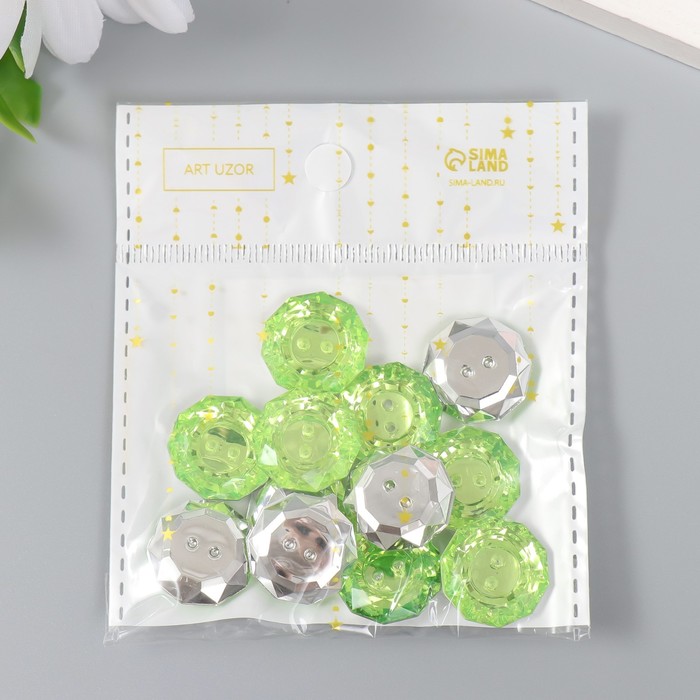 Пуговицы пластик для творчества 2 прокола «Кант страз», набор 12 шт., зелёный, d=1.7 см — Характеристики
