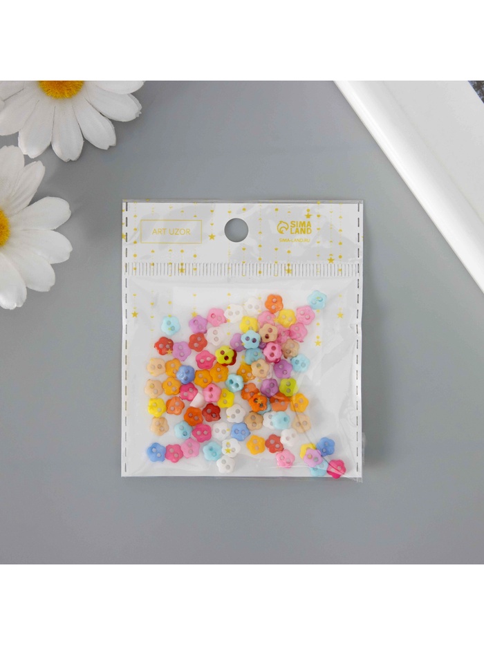 Пуговицы пластик для творчества 2 прокола «Цветные цветочки», набор 80 шт., 0.6×0.6 см — Характеристики