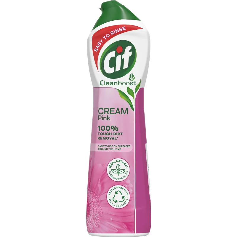 Cif – это имя, которому доверяют более чем в 50 странах. Очиститель Cif Cream Pink эффективно удаляет жир и грязь. Современная формула с микрочастицами удаляет даже самую стойкую грязь, такую как пригоревшая пища и остатки известкового налета. Благодаря новой формуле, требуется меньше промывания очищенной поверхности, что позволяет экономить воду и быстрее наслаждаться чистотой вашего дома. Очиститель Cif Pink имеет восхитительный цветочный аромат!