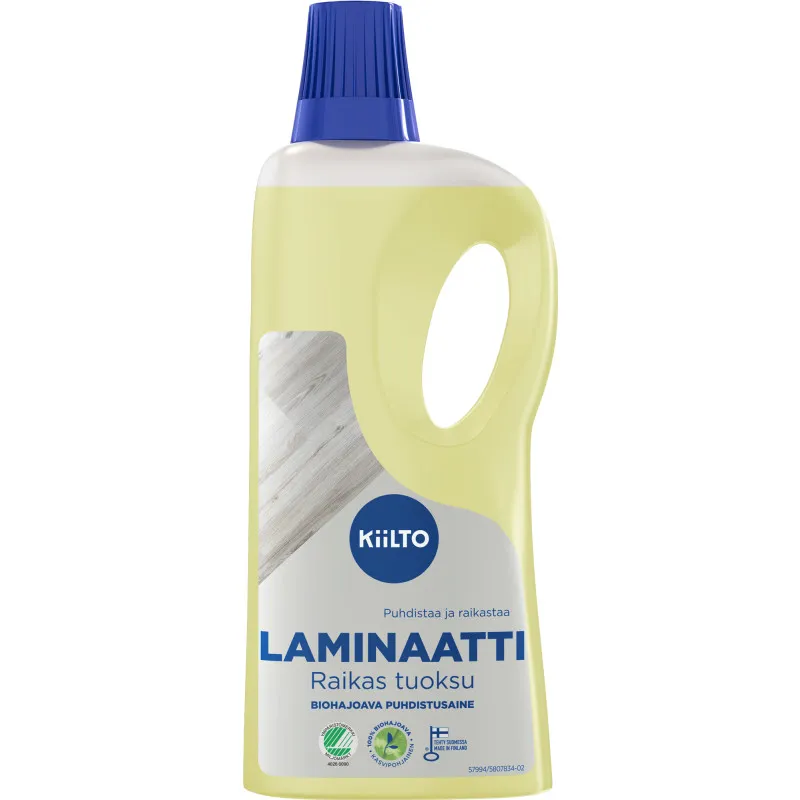 Kiilto Laminaatti Biohajoava Puhdistusaine - это экологически чистый очиститель, предназначенный для ламината, пластика, винила и линолеума. Он эффективно очищает полы, оставляя после себя свежий аромат. Средство быстро высыхает и не оставляет налета на поверхности. Не содержит мыла.