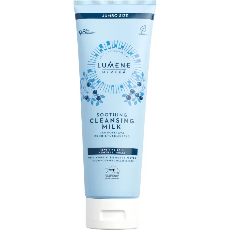 Успокаивающая очищающая эмульсия Lumene HERKKÄ эффективно удаляет макияж и загрязнения с чувствительной кожи. Ее нежная, молочная текстура обогащена северной черничной водой и родниковой водой, успокаивая и ухаживая за кожей, оставляя ее приятной и увлажненной.