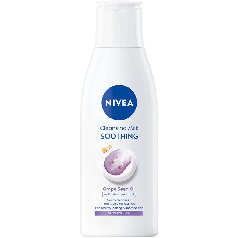 Очищающая эмульсия NIVEA Sensitive Cleansing Milk глубоко очищает кожу и мягко удаляет макияж. Этот продукт увлажняет кожу и помогает сохранить её естественный уровень увлажнённости, а также уменьшает признаки чувствительной кожи, такие как покраснение, сухость и стянутость. Состав эмульсии обогащён маслом виноградных косточек и декспантенолом.