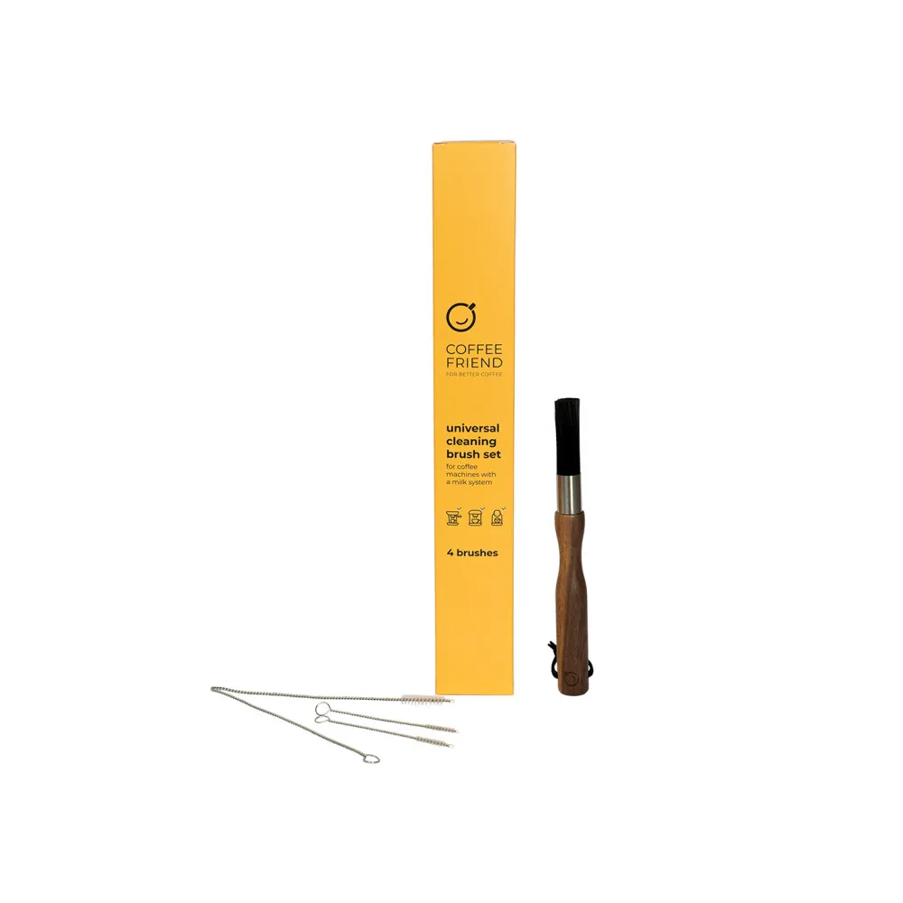 «Как безопасно и тщательно очистить молочную трубку моей кофемашины?» «Кажется, что кофейная насадка моей машины забита и кофе не проходит через нее. Что мне делать?» «Как полностью удалить остатки кофе из моей кофемашины?» Мы часто получаем такие вопросы от наших клиентов, поэтому наконец-то создали собственный набор щеток для очистки всех кофемашин с молочной системой! В большинстве современных кофемашин есть автоматические программы ухода, но некоторые компоненты, например, молочные трубки/шланги, различные насадки, клапаны и выходные отверстия для кофе, все же требуют дополнительного внимания. В этом удобном наборе есть 4 щетки, которые помогут обеспечить чистоту каждого компонента.
