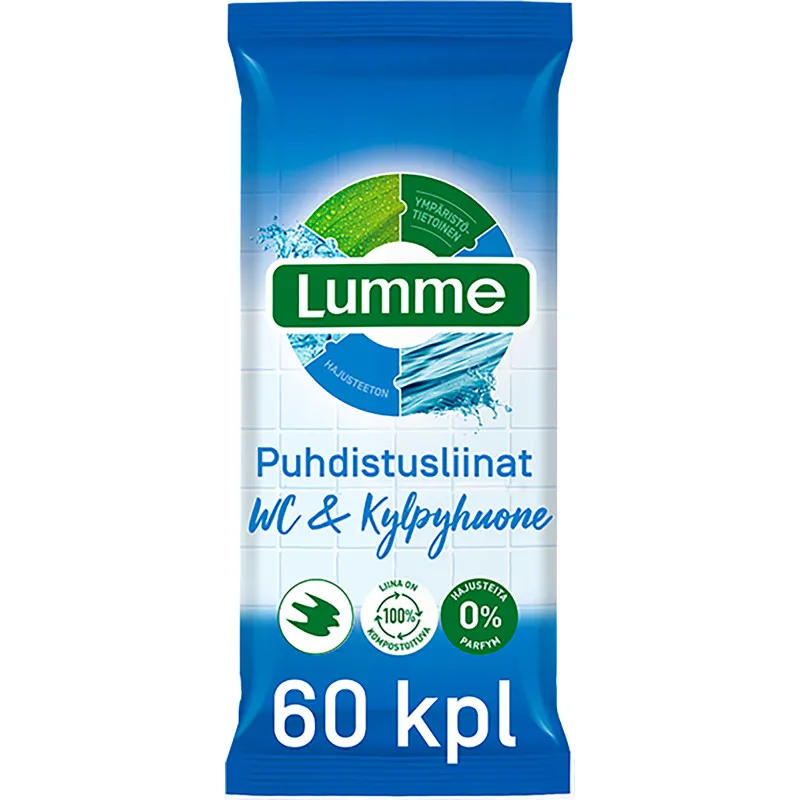 Одноразовые влажные очистительные салфетки Lumme — это быстрый способ очистки поверхностей в туалетах и ванных комнатах. Их крупный размер и функциональная структура обеспечивают эффективную и экологичную чистоту. Протрите поверхность туалета или ванной и выбросьте салфетку в компост!