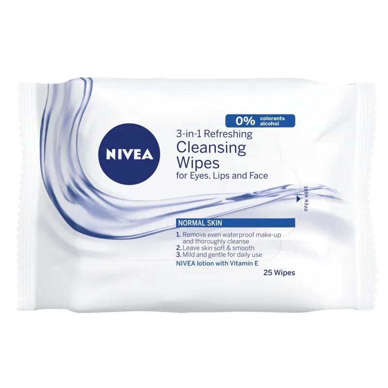 Легкие в использовании очищающие салфетки Nivea Daily Essentials Refreshing Cleansing Wipes разработаны специально для удовлетворения потребностей нормальной кожи. Эти салфетки удаляют макияж с лица, увлажняют и очищают кожу. Они содержат витамин E и увлажняющий комплекс Hydra IQ, который делает кожу увлажненной и свежей, придавая ей красивый и здоровый вид. Салфетки также справляются с удалением водостойкой туши. Упаковка содержит 25 штук.