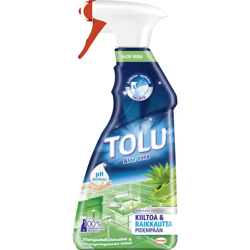 Tolu Aloe Vera – это универсальное чистящее средство, готовое к использованию для ежедневной уборки. Оно pH-нейтрально и обладает приятным и свежим ароматом. Средство удаляет все виды жировых и грязевых пятен и подходит для всех поверхностей в доме. Получите блестящую чистоту всего одним движением!