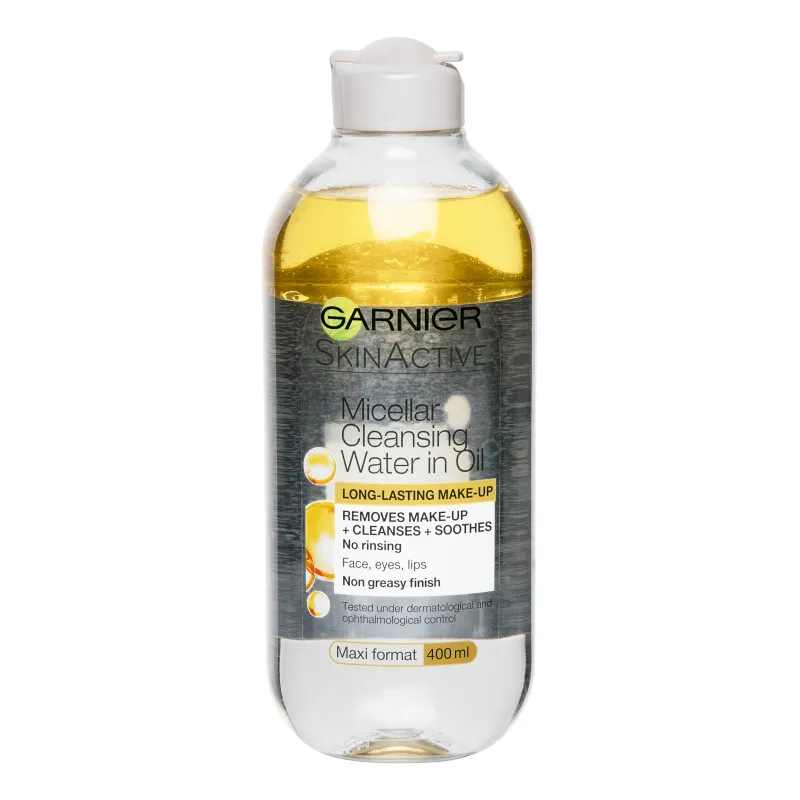 Эффективная и быстрая очищающая вода Garnier Skin Active с мицеллярным маслом очищает кожу и удаляет даже водостойкий или стойкий макияж с лица. Новое поколение масла и воды содержит мицеллы, которые притягивают грязь и макияж, действуя как магнит, а также ультраэффективные очищающие масла. Два слоя активируются при смешивании и мгновенно удаляют макияж любого типа. Очищающая вода очищает, успокаивает и удаляет макияж с лица, глаз и губ - все за один раз.