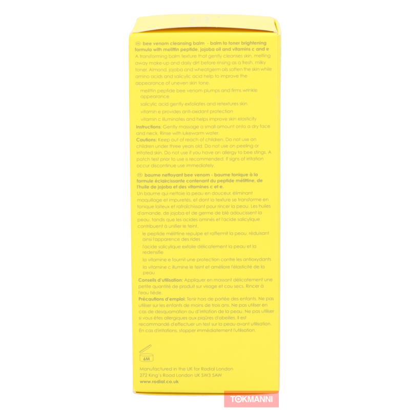 Очищающий бальзам Rodial с пчелиным ядом — это уникальное средство для ухода за кожей, сочетающее в себе очищение и омолаживающие свойства. Его формула помогает деликатно удалять загрязнения и макияж, не пересушивая кожу, а также способствует улучшению ее текстуры и тонуса.