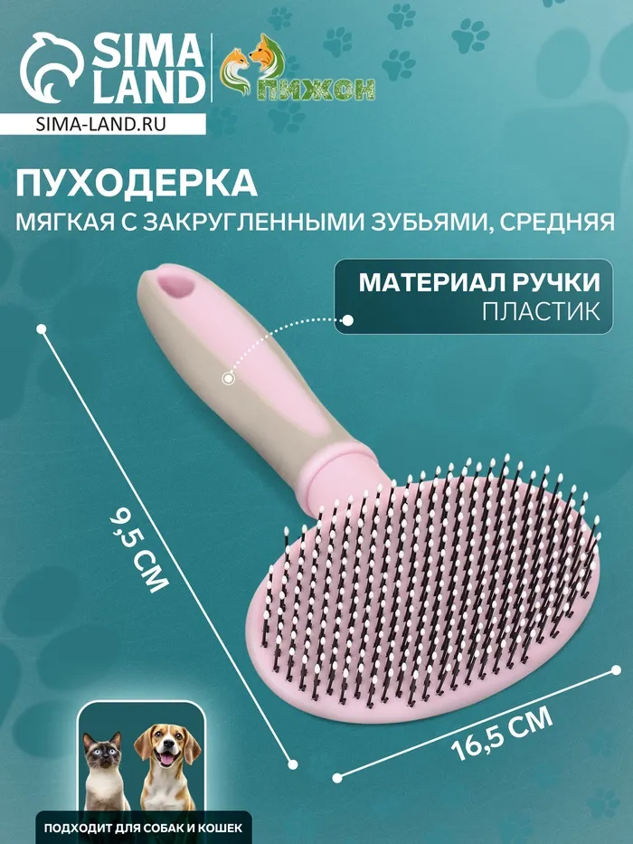 Пуходерка пластиковая мягкая с волнистыми зубьями, средняя, 9,5 х 16,5 см, мятная — Характеристики