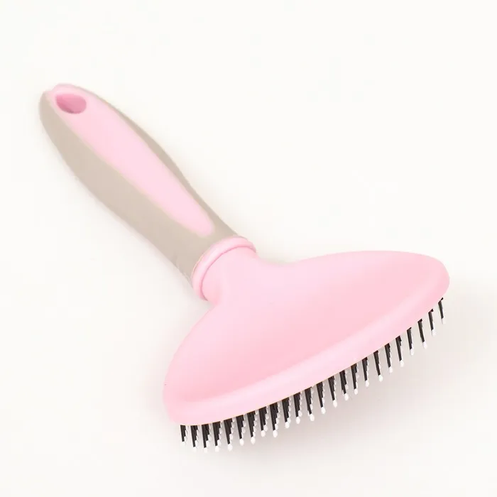 Пуходерка пластиковая мягкая с закругленными зубьями, средняя, 9,5 х 16,5 см, розовая