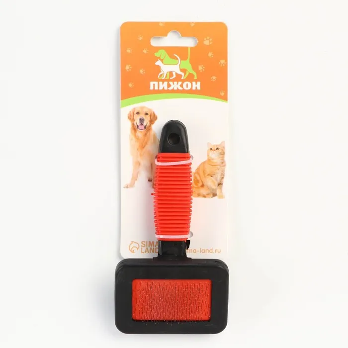 Изделие удобно лежит в руке и не причиняет дискомфорта животному при вычесывании.