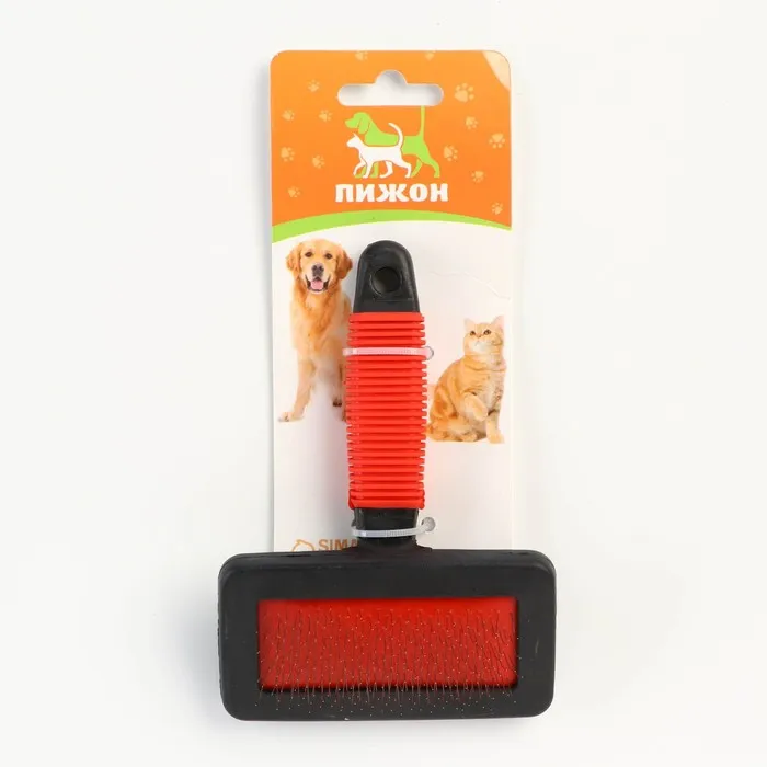 Изделие удобно лежит в руке и не причиняет дискомфорта животному при вычесывании.