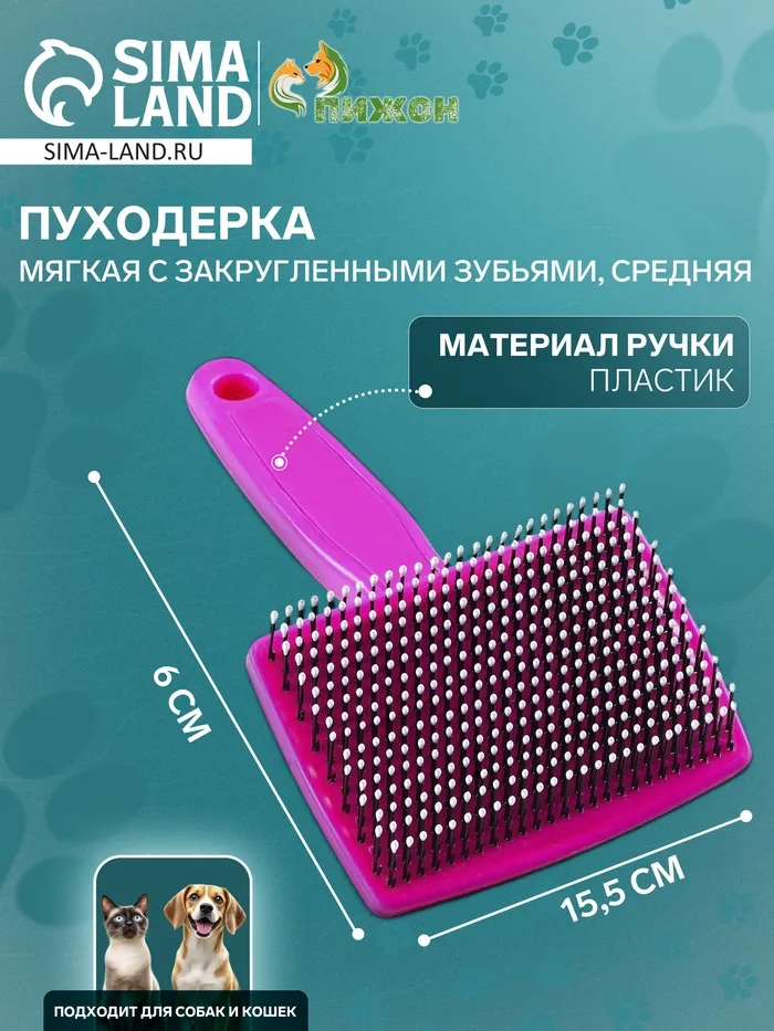 Пуходерка удобна и проста в применении, с ее помощью можно легко прочесать и придать дополнительный объем шерсти. Пуходерка разъединяет шерстинки и вычесывает старый подшерсток, при этом, не повреждая шерсть. Незаменима в период линьки.