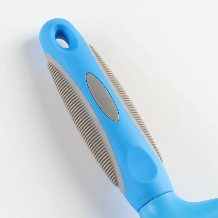 Пуходёрка двухсторонняя гибкая с прямыми и загнутыми зубцами, 21 х 9,3 см, синяя