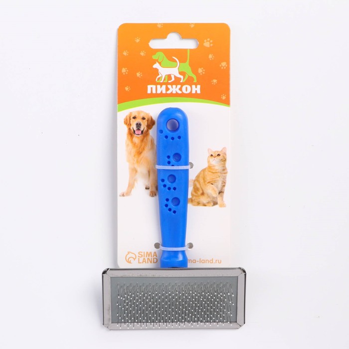 Изделие удобно лежит в руке и не причиняет дискомфорта животному при вычесывании.