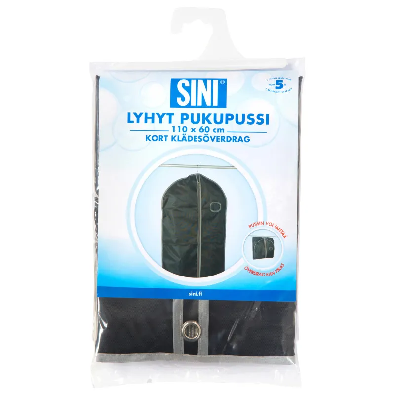 Короткий чехол для одежды идеально подходит для хранения рубашек, юбок и костюмов в гардеробной, шкафу или на складе. Изготовлен из качественного полиэстера, поэтому выдерживает даже морозы. Прочный молния и усиленные края гарантируют долговечность. В верхней части чехла предусмотрено отверстие для вешалки. На передней стороне чехла есть окно, через которое виден его содержимое. Размер чехла 110 x 60 см. Цвета: белый или черный.