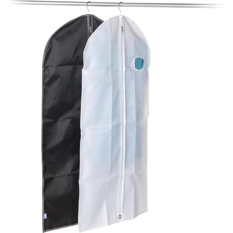 Длинный чехол для одежды идеально подходит для хранения длинных пальто и платьев в гардеробной, шкафу или на складе. Чехол изготовлен из высококачественного полиэстера, поэтому он устойчив к морозу. Прочный застежка-молния и усиленные края гарантируют долговечность изделия. В верхней части чехла имеется отверстие для вешалки. На передней части чехла есть окно, через которое видно содержимое. Чехол для одежды имеет пятилетнюю гарантию. Размер чехла 150 x 60 см. Обратите внимание: при заказе через интернет цвет выбрать нельзя, доставка производится в зависимости от наличия на складе.
