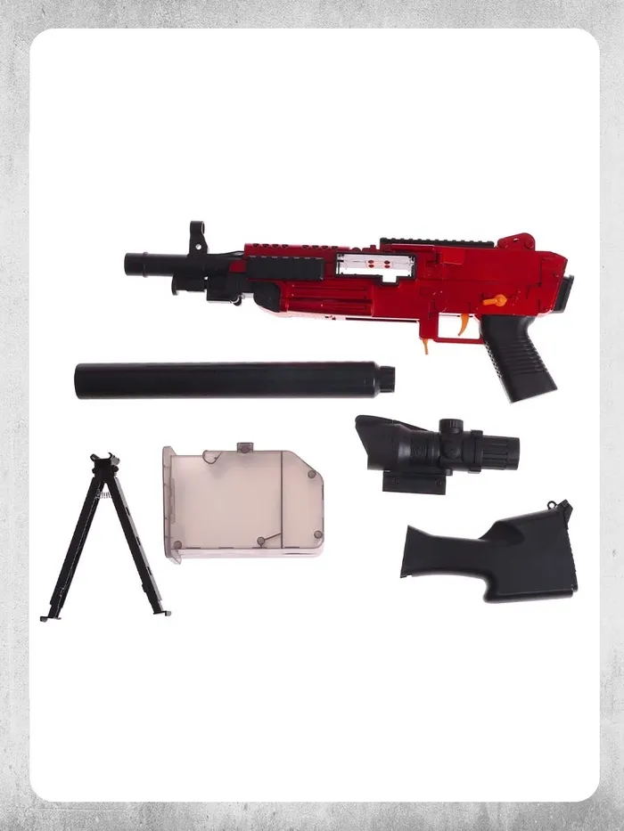 Особая функция пулемёта — эффект разлетающихся гильз, который делает игру ещё более увлекательной и зрелищной. При каждом выстреле пулемёт выбрасывает гильзы, имитируя реальную стрельбу, эта функция добавляет реалистичности и зрелищности игровому процессу. Дети погрузятся в воображаемые сценарии, пробуя себя в роли героя, защитника или стратега.