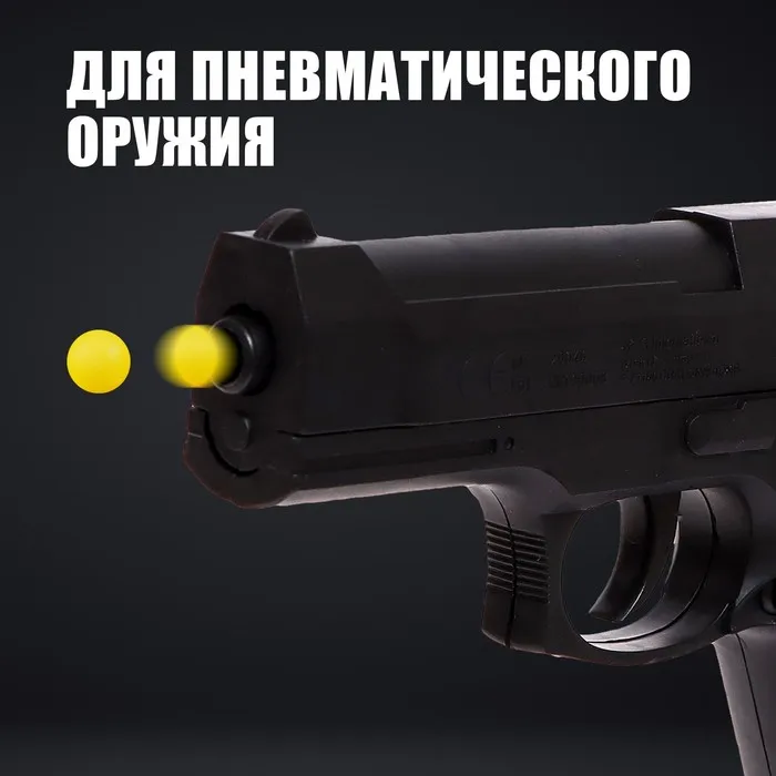 • Яркий жёлтый цвет позволяет легко найти пульки после стрельбы.