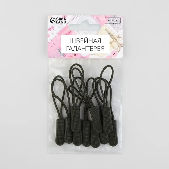 Пуллер для молнии, 2.5 см, 6×0.8 см, 10 шт., хаки — Характеристики