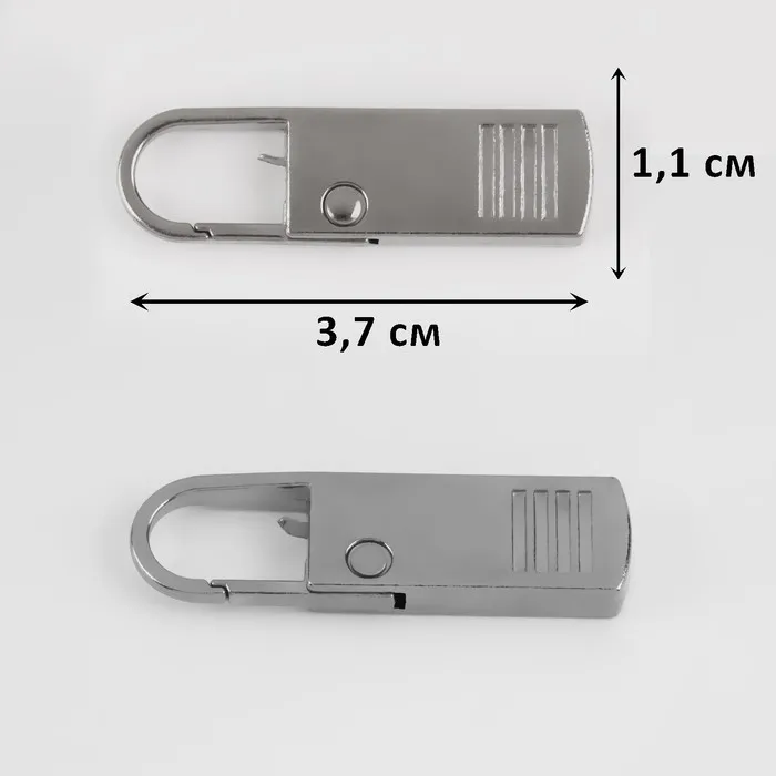 Металлический пуллер — это подвеска для бегунка на молнии. Его можно использовать при изготовлении молнии или же если пуллер на вашей собачке повредился и вышел из строя. Вы всегда сможете заменить подвеску на новую, красивую и удобную именно для вас.
