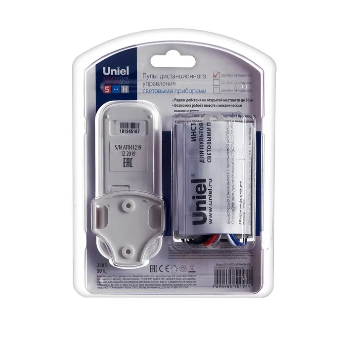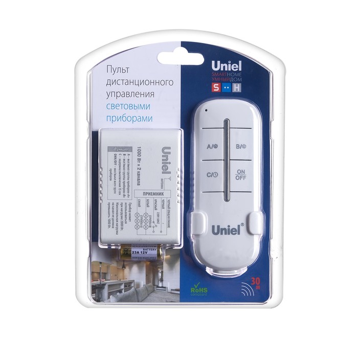 Пульт управления светом Uniel UCH-P005-G2-1000W-30Ml, 2 канала х 1000 Вт, радиус действия 30м — Характеристики
