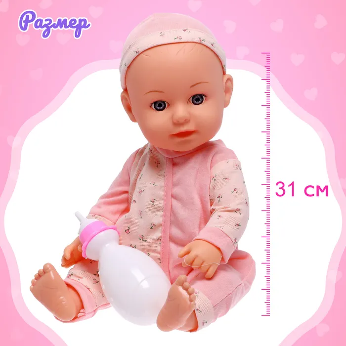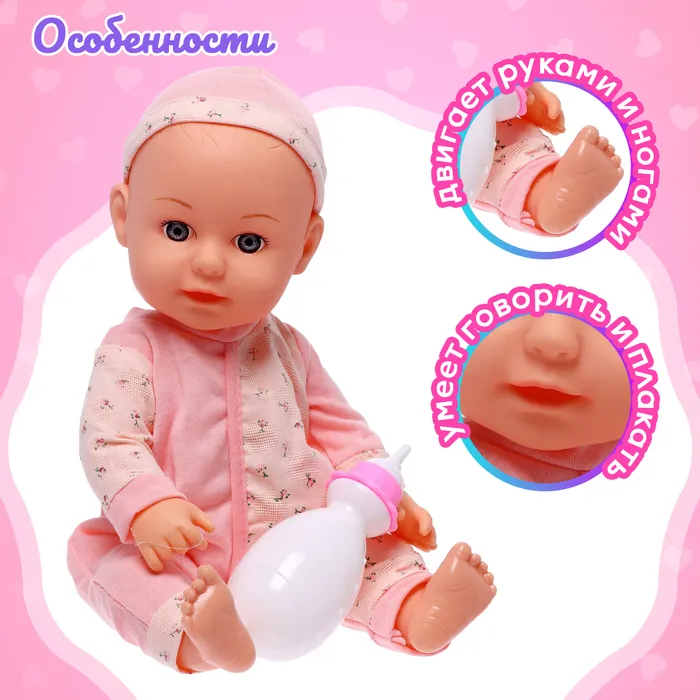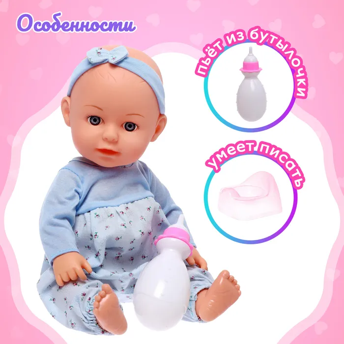 Пупс функциональный «Малыш» звук, пьёт, писает, с аксессуарами, МИКС — Характеристики
