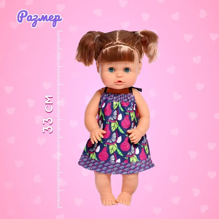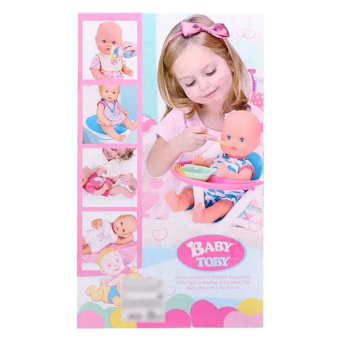 Кукла пьёт из бутылочки, закрывает глаза, писает напрямую (кнопки нет). Ребёнок покормит пупса, посадит его на горшок, искупает в ванной и поменяет ему подгузник. А ещё расчешет волосы и заплетёт косичку.