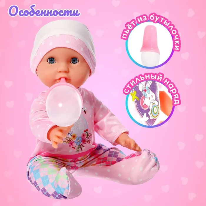 Пупс функциональный «Саша», с бутылочкой, пьёт, писает, цвет розовый — Характеристики
